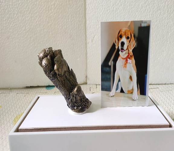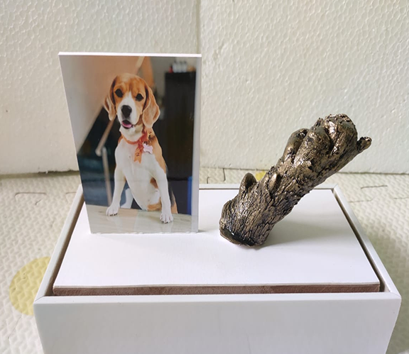 Pet paw casting is a touching way to create a lasting memento of your furry friend's paw print. Similar to family hand casting, This can be a wonderful way to remember a beloved pet who has passed away or simply to celebrate the unique bond you share with your animal companion. Many pet owners choose to display these paw casts in their homes or gardens as a special tribute to their furry family member.